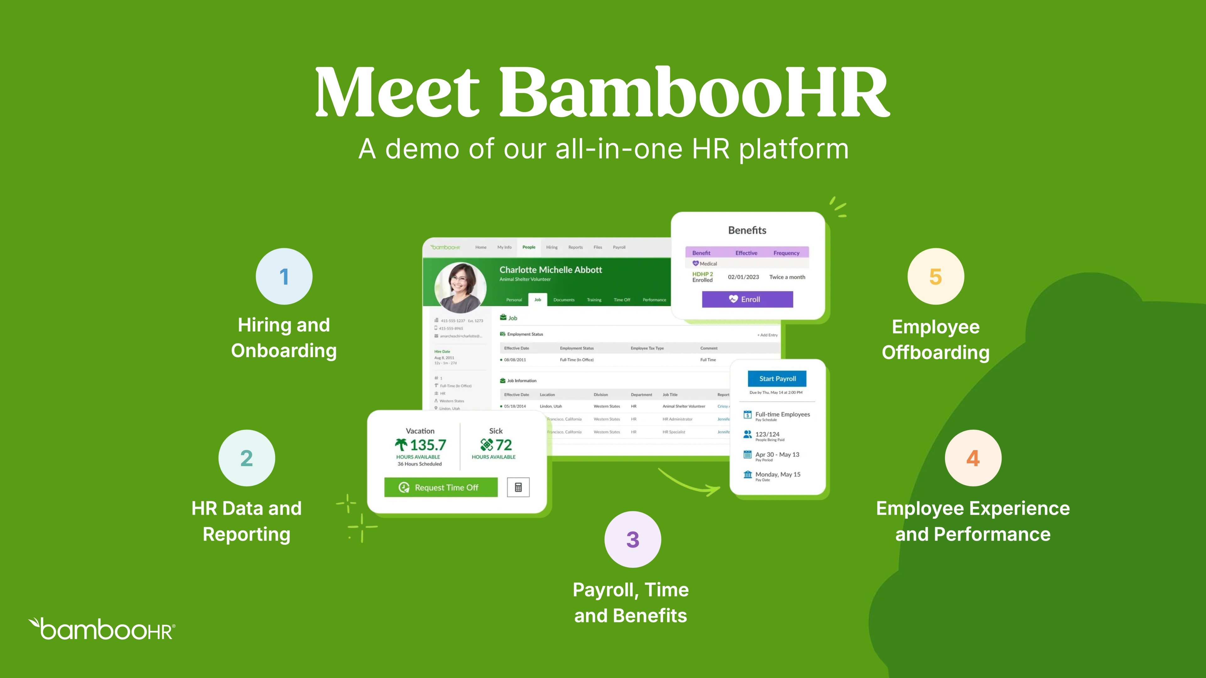 BambooHR® is a cloud-based HR platform that offers a suite of tools, including: