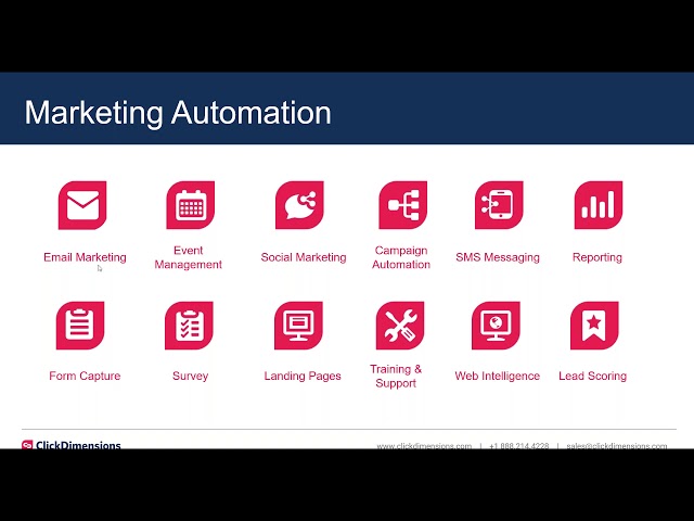 ClickDimensions is a marketing solution for Microsoft Dynamics, made exclusively for and natively built within Dynamics CRM. ClickDimensions combines multi-channel marketing automation technology, a marketing dashboard for deeper insights into marketing results and revenue impact, and a full range of marketing services designed to ensure success for marketers at organizations that use Dynamics 365.