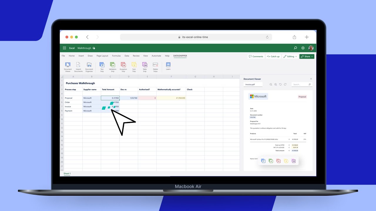 DataSnipper is an Intelligent Automation Platform within Excel that accelerates the speed and quality of audit and finance procedures. DataSnipper can be used to automatically extract, cross-reference, and validate source documents of any audit and finance procedure.