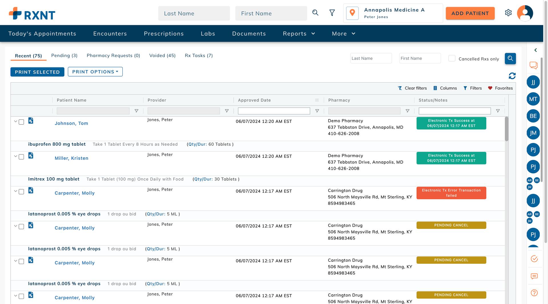 RXNT's clinical EHR software, where users can document patient encounters using custom templates & notes, as well as manage medications and demographic information.